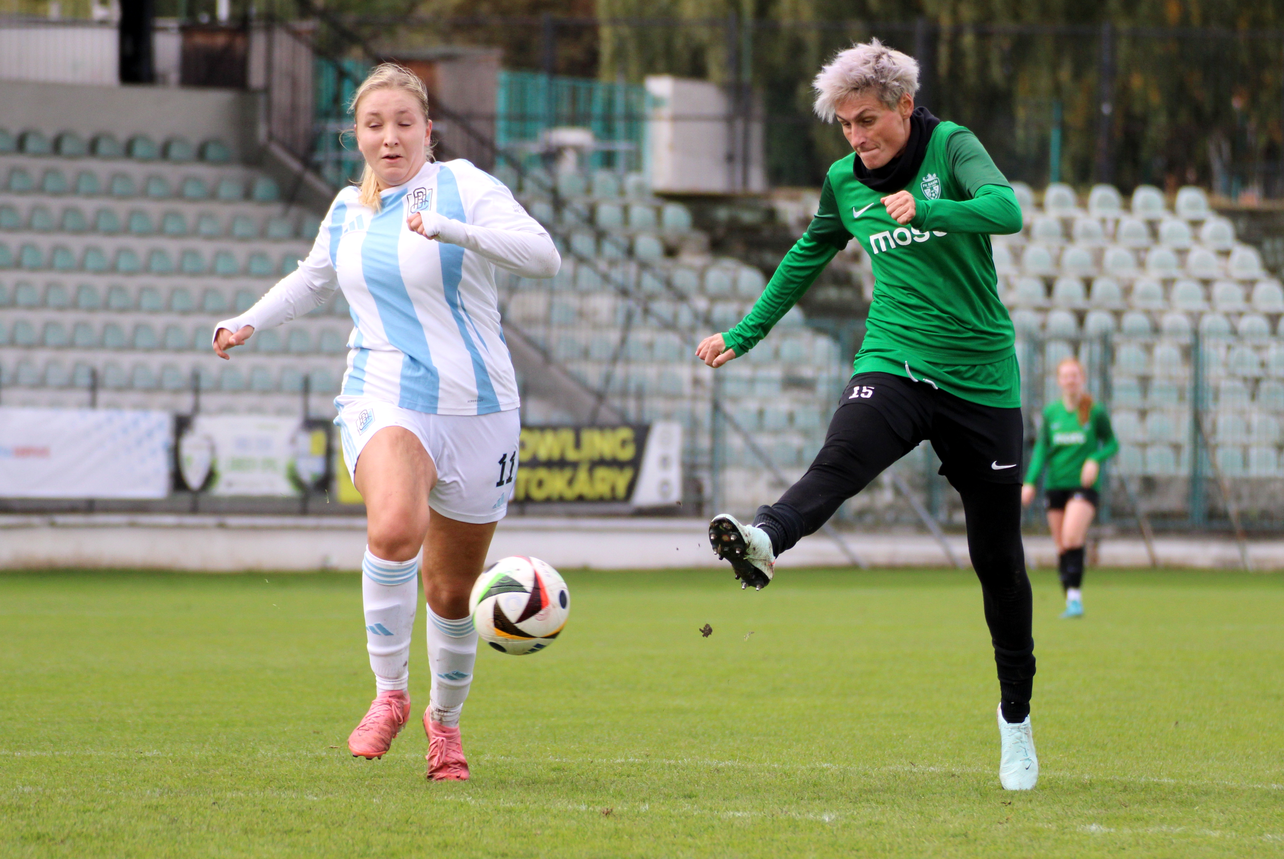 Baníkovské holky znovu dotahovaly. Zkušená Monika Schubertová snížila na 2:3 a utkání dostalo nový náboj. Ve 33. minutě se opět prosadila Čížová a vyrovnala na 3:3. Do kabin šly domácí spokojenější, v 45. minutě dělovkou prostřelila Snakovou Renáta Kotulová a otočila skóre na 4:3.